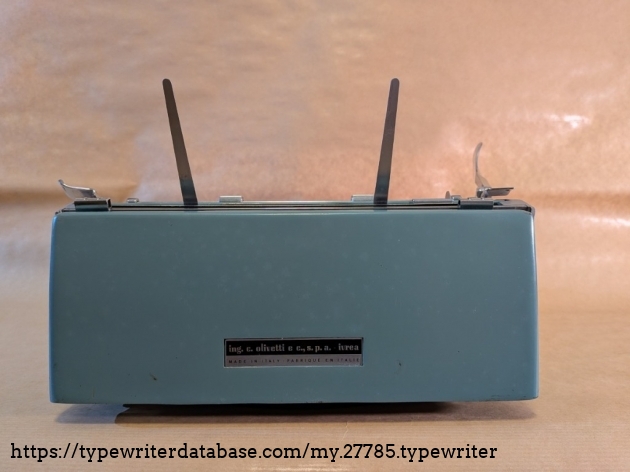 Later Studio 44 model with Elite Book typeface, 12 cpi, and Italian keyboard layout. The symbol on the type slugs is "84", which is sometimes referenced as Bodoni or Congress 84. It came in with the wood carrying case and in working condition, but aesthetically, it is pretty battered. The return spring of the carriage lever broke during use, but it does not affect the machine's usability.