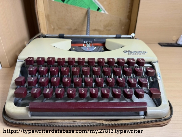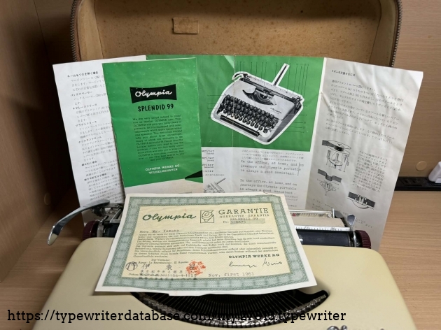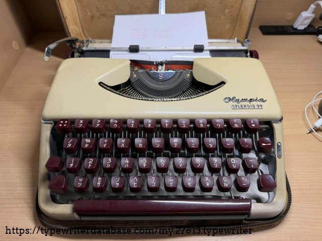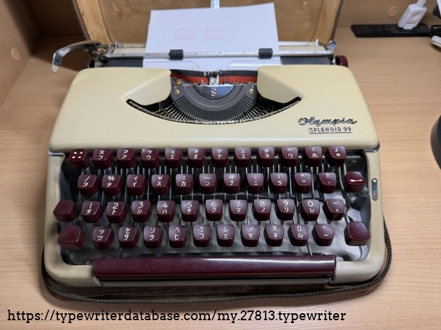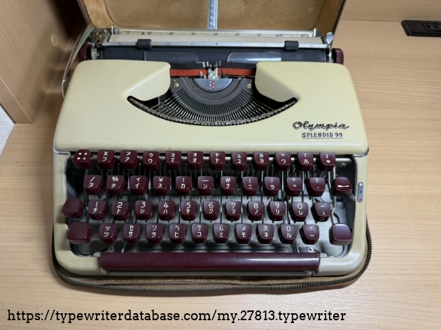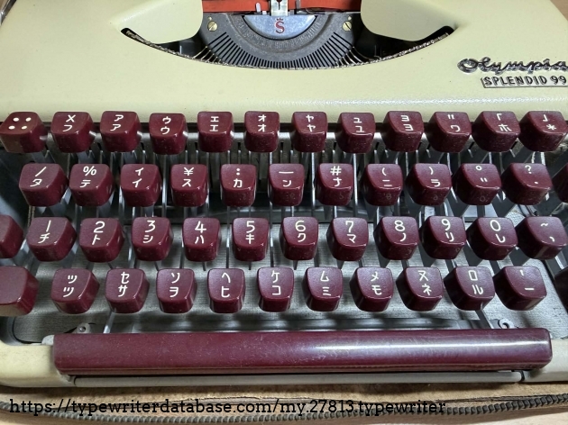 This is my second Splendid 99 with burgundy colored keys. It's a Japanese version this time. Made in Germany, it has katakana font types. Recently bought here in Japan, it works perfectly well and as a bonus has a lot of documentation, although the pages on the brochure in English are stuck to each other, probably due to moisture over time.