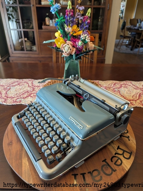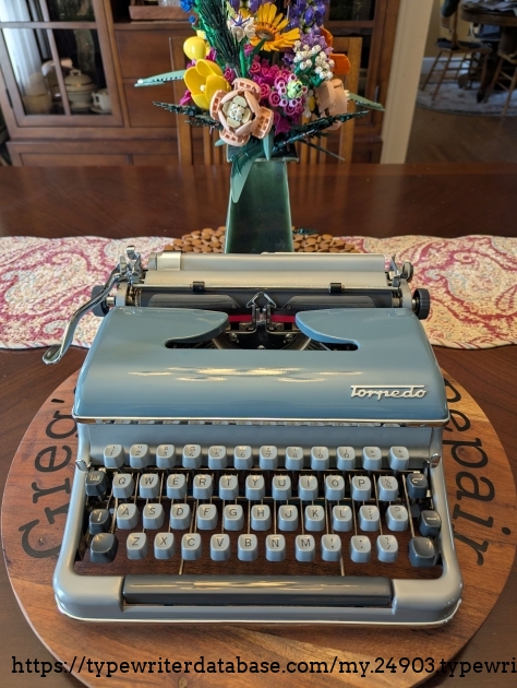 Torpedo 18b I picked up in July 2022. I wanted one for a while, so I paid more than I would have liked to for the condition it was in. It had melted feet and a rock-hard platen, and for a long time I resisted replacing them. But as time went on, I finally splurged on new feet and getting the platen recovered. Both repairs really transformed the typewriter, so the expense feels justified.