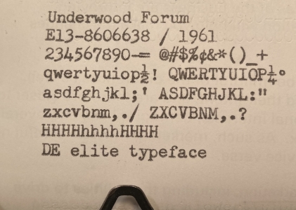 Batting average went up. I'd say it was serviced and not used much after that. Rear tab rack cover was missing two screws and so it was dragging on the back panel and it is a little banged up. The line lock link was hanging free. There are a couple typebars that need more cleaning in the segment. This is throwing the impression off some.