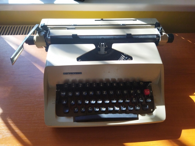 A Consul 2224 with a Serbo-Croatian (latin script) layout. Purchased in the early 2010s in Belgrade. Apparently, the previos owner has purchased this machine right before passing away, and as such it has arrived in near brand-new condition. It is missing the index card holders, but otherwise is it is in great condition. It was serviced circa 2014-15 due to not advancing when typed. I used it to write several novels and I am ccurrently working on my new novel with it. So many happy memories!