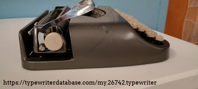 A 1962 Royalite Companion - my third typewriter that was sold to Dylan in October, 2025. Bought from a lady from NY. It came pretty dirty in its leather case and needed to be blown out and cleaned out. The bell did not work and bearings were rolling around in the body from the carriage. Got that stuff taken care of and covered the platen with some heat shrink I had. A bit of a stiff typer that was not a pleasure to touch-type on with my untrained hands, but perfect for heavy handed students who like to practice percussive therapy. Eventually one of those students wanted to buy it, so I sold it to him with the agreement that if he ever changed his mind or wanted to sell it I would buy it back for the price paid.