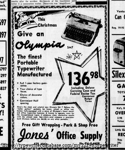 RESEARCH NOTE: When researching the Olympia SM7 on a computer with lots of screen real estate, you may find that launching the Olympia Serial Number page and the Olympia SM7 By Model/Year/Serial page in new browser windows can give you interesting perspectives on changes throughout the model series.