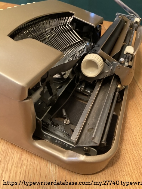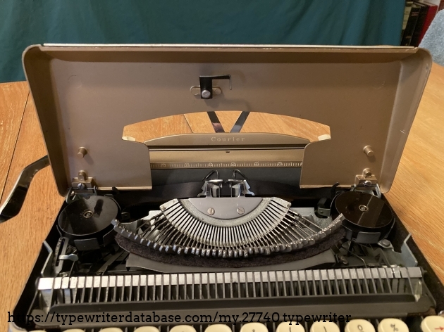 RESEARCH NOTE: When researching the Smith Corona Golden Shield Courier on a computer with lots of screen real estate, you may find that launching the Smith Corona Serial Number page and the Smith Corona Golden Shield Courier By Model/Year/Serial page in new browser windows can give you interesting perspectives on changes throughout the model series.