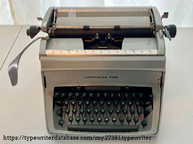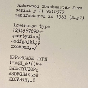 I purchased this Underwood touch-master 5, January 30, 2026, through shoppinggoodwill.com from Dayton, OH. I was interested in this typewriter because it is a manual standard. As a typewriter, it is the last generation of Underwood typewriters derived from the Underwood 5. It shows the generational refinement of this model. I appreciated its industrial design, it has spring held access panels on all sides. Each panel gives access to different mechanical parts of the typewriter; this makes maintenance and repair easier. I also appreciated its aesthetic design. It shows the influence Olivetti had in the last standard manual type writer made by Underwood.