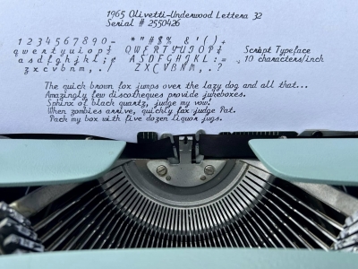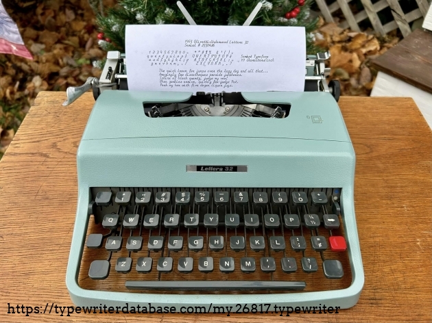 A script Lettera 32 in excellent condition. What more is there to say? Purchased from a fellow typewriter enthusiast in Royersford, PA in November, 2025.