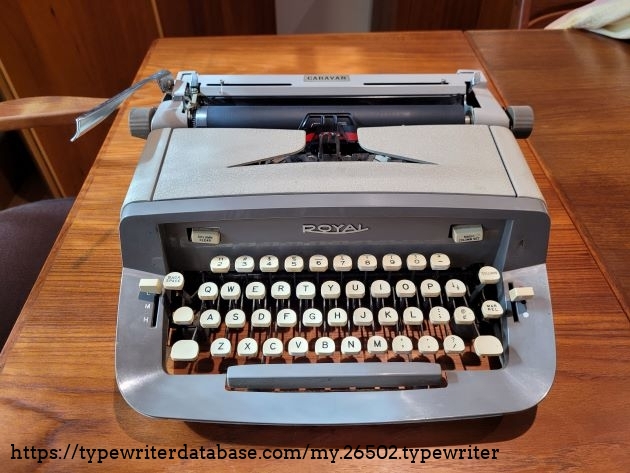 Got a text from a friend: "Hi, we're cleaning out a deceased relative's house in NJ -Want this?" With a pic of a Royal case, unopened. I replied "sure!" without even checking to see which friend had sent the message (I hadn't saved the name in my contacts). Fortunately, he turned out to be a local friend, so no shipping was involved. A few weeks later, I picked up the case from him, complete with a rusty key hanging from a string. Got it home and opened it up to find this 1965 Royal Caravan, very dirty and dusty but functional. Keys not even sticking. I am still in the process of cleaning it. The original owner was named Erwin, so the typewriter will be named in his honor.