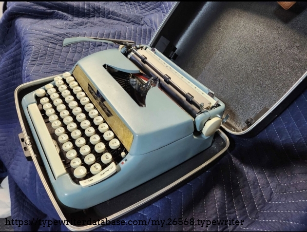 Late 5AX model, probably made in 1966 or even 1967, offered to "Miche" by her Aunt Georgette, as a university graduation gift in 1967 in recognition of outstanding grades, as written in a graduation card found with the typewriter. This aunt must have been very dear to young "Miche" for her to have kept the card inside the case.