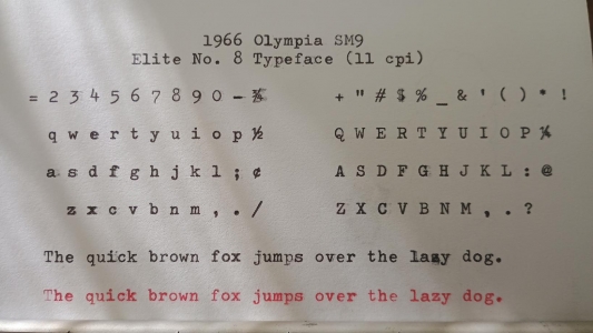 RESEARCH NOTE: When researching the Olympia SM9 on a computer with lots of screen real estate, you may find that launching the Olympia Serial Number page and the Olympia SM9 By Model/Year/Serial page in new browser windows can give you interesting perspectives on changes throughout the model series.