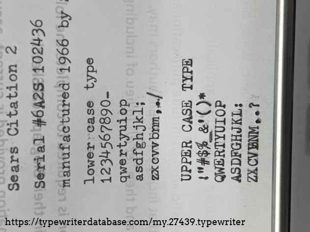 I purchased this Sears Citation 2, February 3, 2026, through shoppinggoodwill.com from San Jose, CA. I was interested in this typewriter because it is a manual portable. As a typewriter, it is in the Smith Corona Marchant (SCM) series 6A. Yhe Sears Citation 2 was only manufactured in 1966. It has a 9.5 inch carriage and its painted body is made of aluminum. I appreciate its aesthetic design, using a cream-colored paint with gray accents.