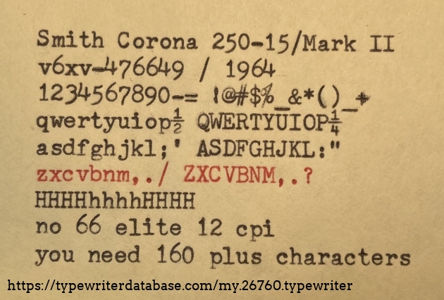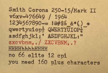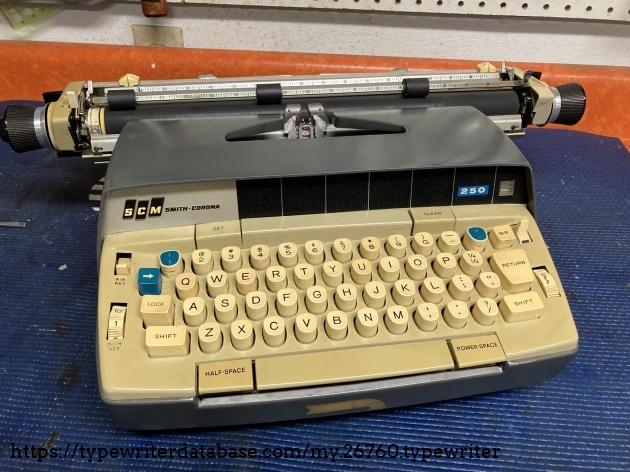 RESEARCH NOTE: When researching the Smith Corona 250-15 Mark II on a computer with lots of screen real estate, you may find that launching the Smith Corona Serial Number page and the Smith Corona 250-15 Mark II By Model/Year/Serial page in new browser windows can give you interesting perspectives on changes throughout the model series.
