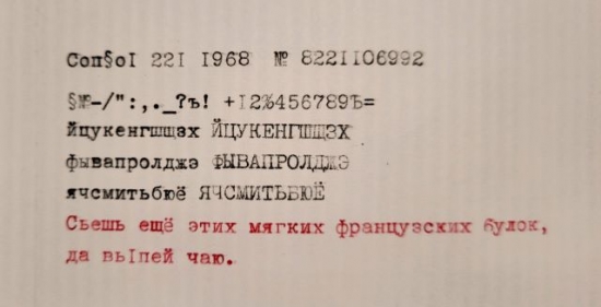 Just before Thanksgiving 2025, I found this Consul 221 with Cyrillic keyboard in a Virginia antique mall. ("Should we duck into one more antique mall? This one closes in 30 minutes. Oh, well, why not, we're already out.") It had been marked down from $175 to $99 to $65, and was in great condition with the original case, key, and a working ribbon. Wondering how a Russian character typewriter made it to Virginia, I looked for clues and found some carbon paper inside the case marked "US Government Printing Office, 1982 375-585." I'm wondering if it was used by a government translator, as Washington DC isn't far from Northern Virginia. In any case, it types nicely and smoothly, not unlike a Facit (thus the pic of it with my Facit, which has visual similarities both with the body and case). I'm looking forward to using it to type some "happy holidays" messages in multiple world languages and also letting my son who knows some Russian use it. It was made in Czechoslovakia.