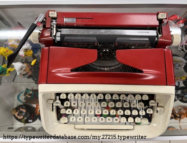 This Custom had the annoying habit of adding a space after you press some of the keys on the top row, that and the vibrator was jammed in the up position, the tab setting mechanism didn't work and something is desperately wrong with those typebars. I though about buying it solely because I'd like a good challenge; who knows, maybe I'll go back for it later...