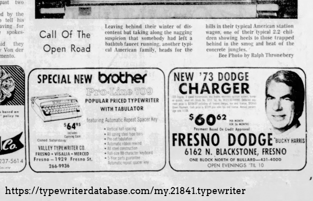 RESEARCH NOTE: When researching the Brother Pro Line 709 on a computer with lots of screen real estate, you may find that launching the Brother Serial Number page and the Brother Pro Line 709 By Model/Year/Serial page in new browser windows can give you interesting perspectives on changes throughout the model series.