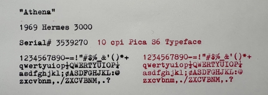 I finally found a Hermes 3000 S6 Typeface Pica machine. Purchased from Facebook Marketplace locally from a young woman who is moving to a smaller place and needs the space. This machine has been serviced by the legendary Typewriter Whisperer Mitchell here in San Diego. The machine is in perfect shape, types like a Hermes should.