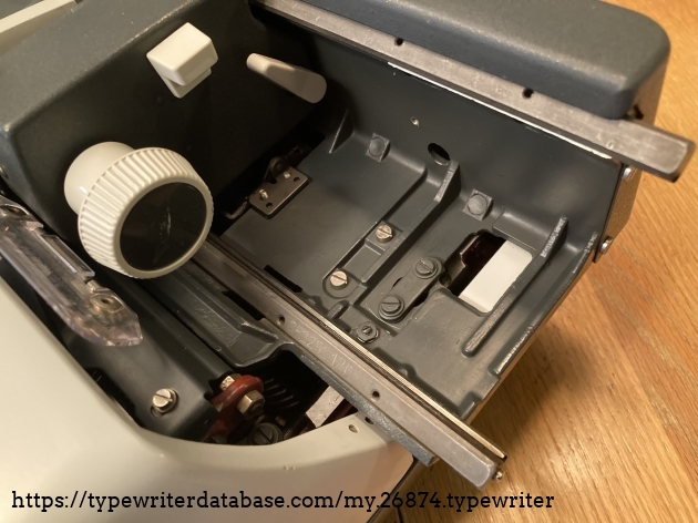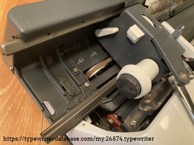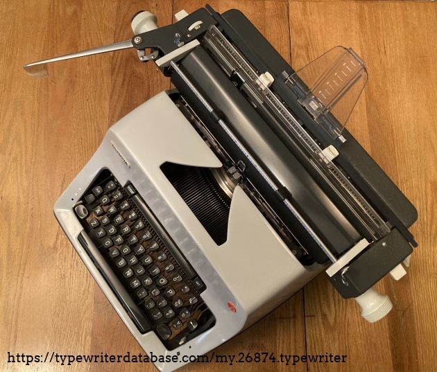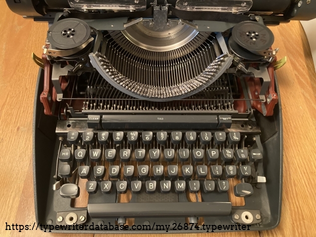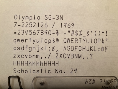 The big typeface (Scholastic No. 29/6 cpi) makes this machine seem even bigger. Super clean, and by the backstory and tagging, it was serviced in the mid-90s and sent back to a primary school, where it appears it was mostly retired. The platen condition suggests it was replaced during the last checkup.