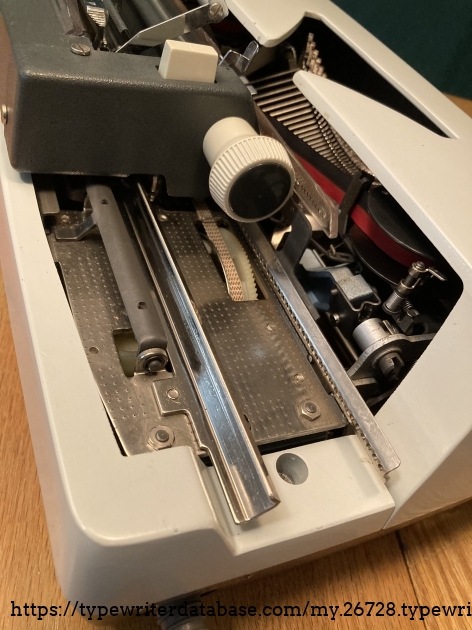 Olympia enters the office compact market late. A direct competitor to the SC250. The SGE30 appears to be the same machine. There wasn't much of an ad push for either. Maybe they wanted to sell the SGE45 instead. This is a serious bit of engineering. Things have come a long way in a decade since the intro of the 5TE . Check out the diamond plate and the carriage frame is chrome plated.