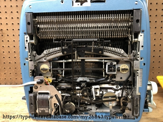 This machine is part of the "6ELN" series, and the lower serial number would seem to indicate it is an earlier production. There's no date code, either. Based on ads (see below) from the time period, the Automatic 10/12 debuted in about 1970, so this might be a late '60s or early '70s machine. Pictures are from before cleaning.