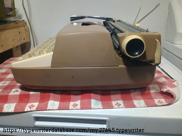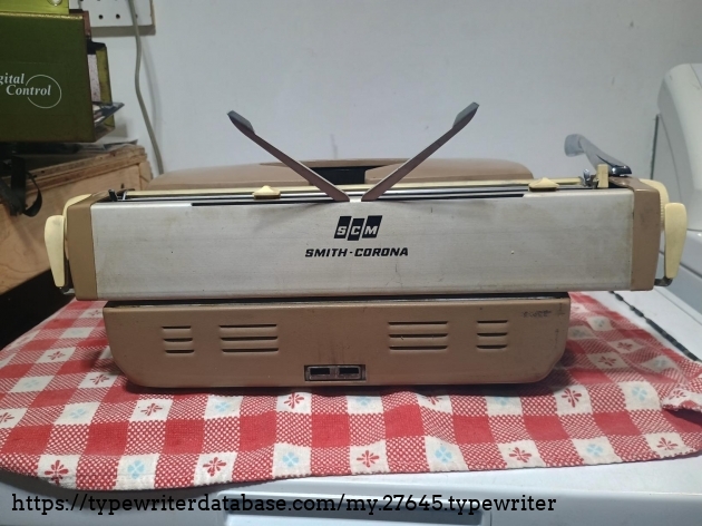 An early SMC Electra 120 bought in March of 2026 from a lady in Queensbury, NY. I don't know where it came from before that, but has a sticker from Glens Falls on it, which isn't far from Queensbury. Very dirty and a couple of missing/broken plastic parts and missing a base screw or two, but functioning. What was important to me was that it had the Artistic Script typeface.