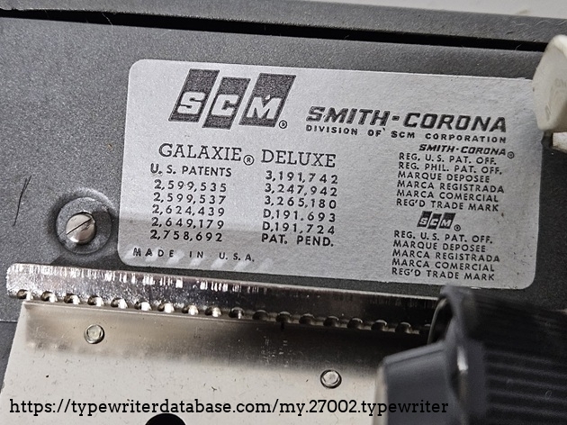 RESEARCH NOTE: When researching the Smith Corona Galaxie Deluxe on a computer with lots of screen real estate, you may find that launching the Smith Corona Serial Number page and the Smith Corona Galaxie Deluxe By Model/Year/Serial page in new browser windows can give you interesting perspectives on changes throughout the model series.