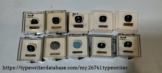 Typewriter has a Pica typeface and was in the box - still bolted to the styrofoam. Cover (partially melted to the styrofoam) and a bunch of extra typeslugs were included, along with the paperwork.