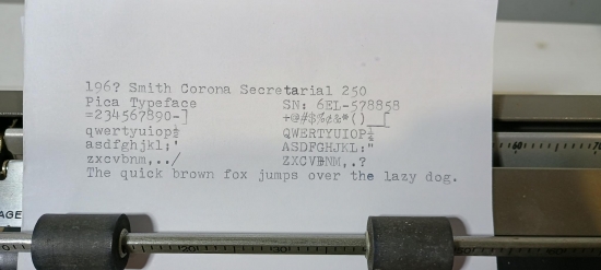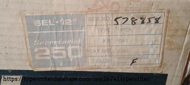 RESEARCH NOTE: When researching the Smith Corona Secretarial 250 on a computer with lots of screen real estate, you may find that launching the Smith Corona Serial Number page and the Smith Corona Secretarial 250 By Model/Year/Serial page in new browser windows can give you interesting perspectives on changes throughout the model series.
