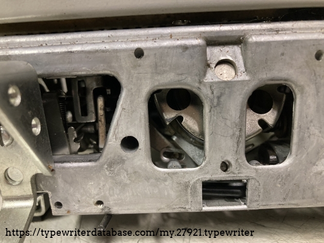 Despite the conventional wisdom, this is not a 210/220/250 in a big metal shell. Maybe the components in this came from the 400 series standards. The main difference is the rack and pinion carriage return is now cable-driven via a solenoid with a proper carriage dash pot (de-accelerator). The frame is braced and a number of parts are HD compared to the typical 250s.