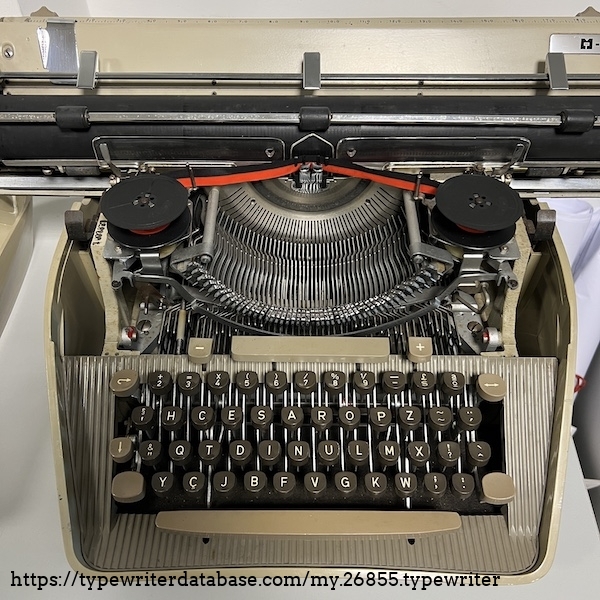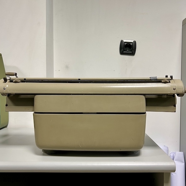 Uma máquina brutal, tal como a SG3, p.ex. Máquina integralmente com origem na Alemanha mas ligeiramente alterada pela Messa, que a fabricou. Estes modelos tiveram origem na Siemag Standard e são de uma construção irrepreensível. É muito precisa e está em muito bom estado. A impressão é perfeita... Teclado HCESAR, layout obrigatório nas máquinas do Estado. Existiam milhares destas máquinas espalhadas pelas repartições públicas e nas Forças Armadas. Uma maravilha...