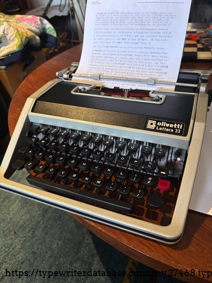 RESEARCH NOTE: When researching the Olivetti Lettera 33DL on a computer with lots of screen real estate, you may find that launching the Olivetti Serial Number page and the Olivetti Lettera 33DL By Model/Year/Serial page in new browser windows can give you interesting perspectives on changes throughout the model series.
