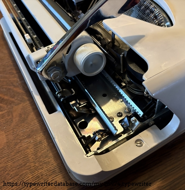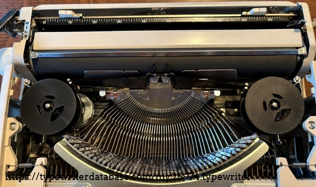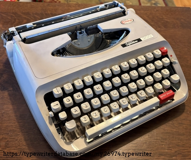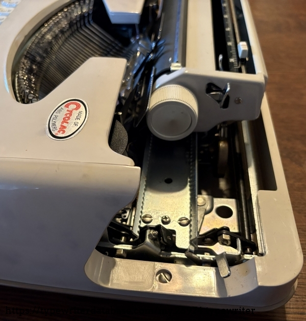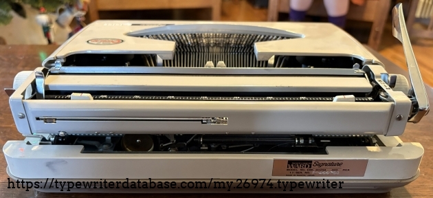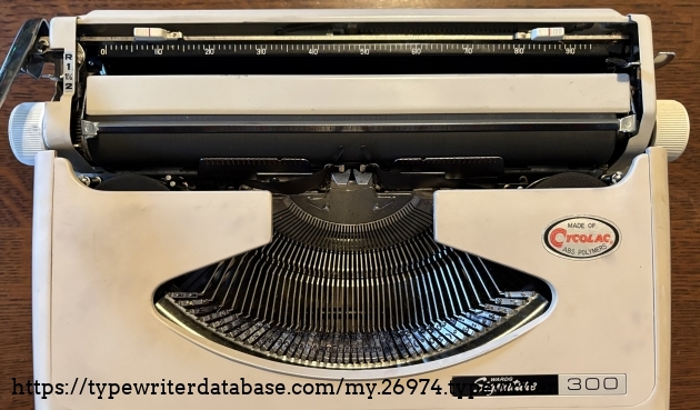 Owned by my niece who received it as a gift from her mother and father. This is a rebadged Brother JP-1 and as they are famous for, the typing action is top notch. The plastic body is solid. The ribbon was dried out so I was unable to prepare a typeface specimen sample but it is a 10-cpi Pica machine with crisp, clean type slugs. I confess that in playing with the ribbon I got my fingers dirty and then handled the body so the smudges on the typewriter are mine and do not reflect the overall cleanliness of this machine. It does not look much different than the day that it was sold back in the early 1970's. I told my niece that she has a winner here and encouraged her to break it out every once in a while and put it through its paces.