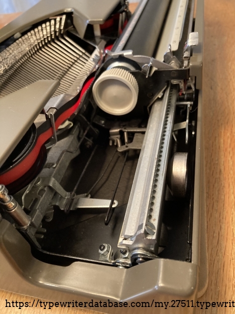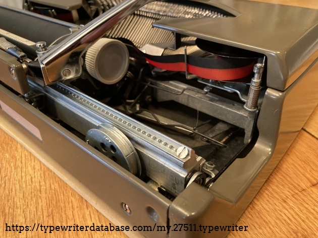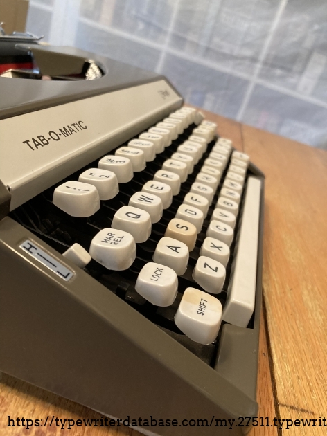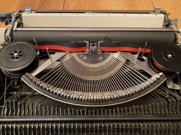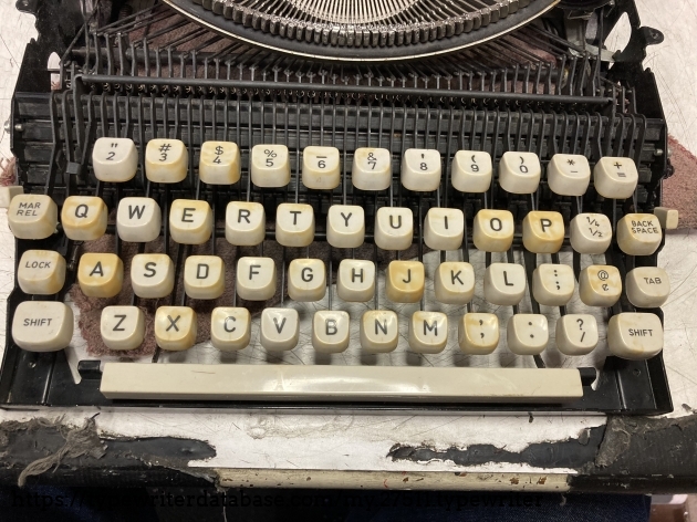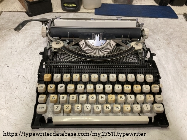 The upgrade from the Mercury. This $10 add on was going to be for parts. It has a nice soft platen that could replace a rock-hard one in a Mercury, was the plan. It had the splotchy keys, was full of dirt, and rattled. Oh, and no cover.