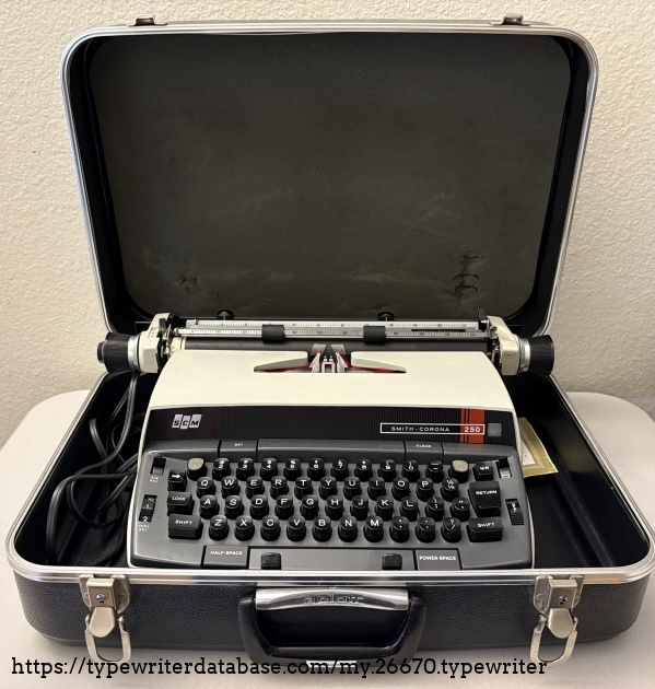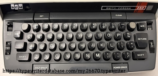 RESEARCH NOTE: When researching the Smith Corona Office Electric 250 on a computer with lots of screen real estate, you may find that launching the Smith Corona Serial Number page and the Smith Corona Office Electric 250 By Model/Year/Serial page in new browser windows can give you interesting perspectives on changes throughout the model series.