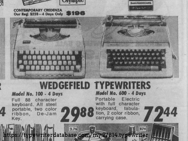 K-Mart launched the Wedgefield brand of typewriters in 1971.