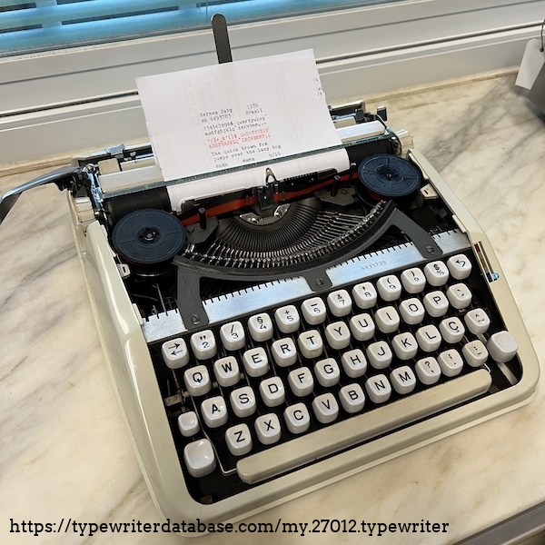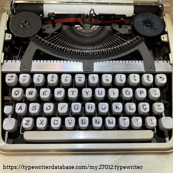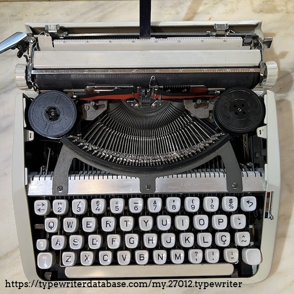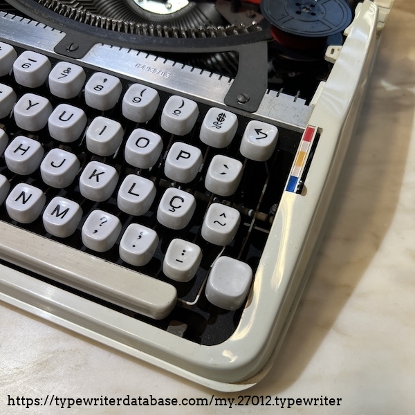 A minha primeira máquina fabricada no Brasil. Chegou sem tampa mas creio que terá sido das primeiras a ser produzida no Brasil, com este visual. É uma QWERTY portuguesa, coisa que é rara de ser encontrada por aqui.