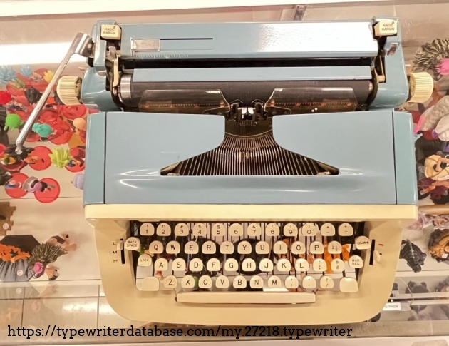 Sighted at a mall antique shop along with a Royal Custom. Was in good condition, though the tab set felt like it was chafing something. It had a sticker that said it was for sale for $5 but when I went to buy it (it was five bucks, of course I woulda bought it) the cashier said it hadn't actually been priced yet; I'll go back later. Pica typeface