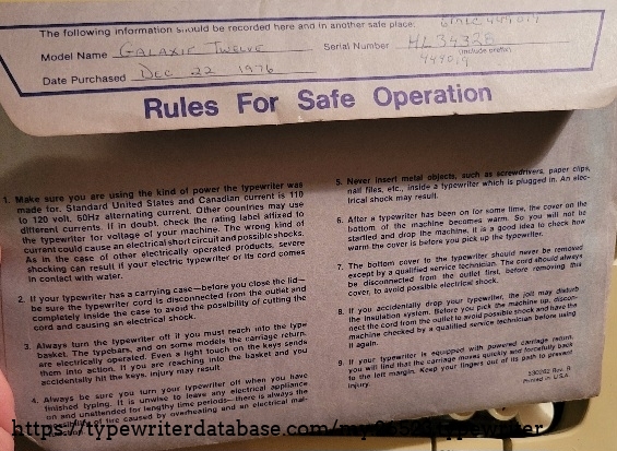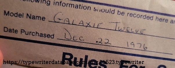 RESEARCH NOTE: When researching the Smith Corona Galaxie Twelve on a computer with lots of screen real estate, you may find that launching the Smith Corona Serial Number page and the Smith Corona Galaxie Twelve By Model/Year/Serial page in new browser windows can give you interesting perspectives on changes throughout the model series.