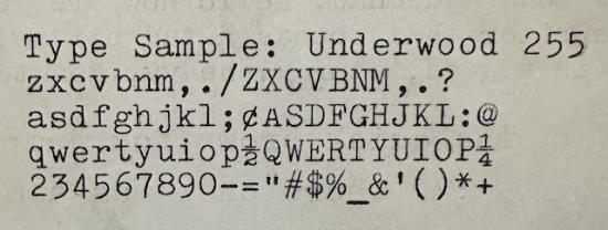 RESEARCH NOTE: When researching the Underwood 255 on a computer with lots of screen real estate, you may find that launching the Underwood Serial Number page and the Underwood 255 By Model/Year/Serial page in new browser windows can give you interesting perspectives on changes throughout the model series.