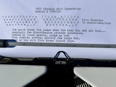 A very nice, very clean Olympia SM-9, purchased from a fellow typewriter enthusiast in Lansdale, PA in February, 2026. Stella, the neighbor cat, even came over for some pets while out taking photos! =)