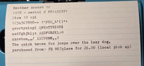 I have loved pressing buttons since I was little. I have memories of playing with the buttons on my grandma's Princess telephone, and watching her fingers with her long red-painted nails fly over her Selectric. I wanted to use it so badly! Also, my grandpa's adding machine. THAT we were only allowed to touch supervised. Now I'm collecting typewriters in all sorts of conditions and enjoying learning how to fix them. I haved fixed alignment issues, replaced a typeslug (ugh) and solved some other minor problems with the helpful feedback and videos of those that have come before me. My first was a 1964 Smith-Corona Classic 12 (so sharp looking), my rarest (I think?) is a 1972 Montgomery Ward Escort 55 in canary yellow. Mostly type letters. I try to practice my typing once a day.