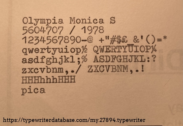 RESEARCH NOTE: When researching the Olympia Monica S on a computer with lots of screen real estate, you may find that launching the Olympia Serial Number page and the Olympia Monica S By Model/Year/Serial page in new browser windows can give you interesting perspectives on changes throughout the model series.