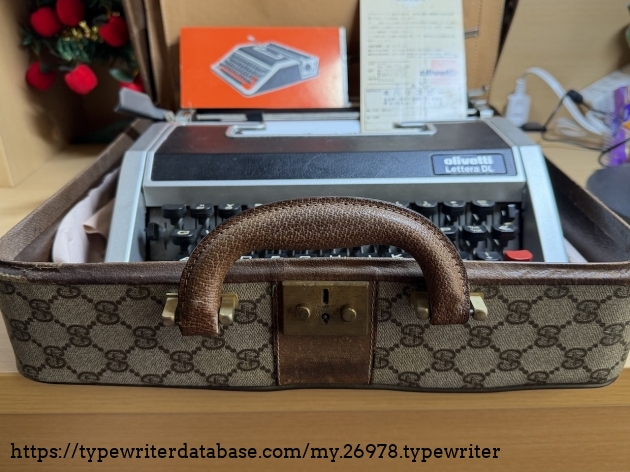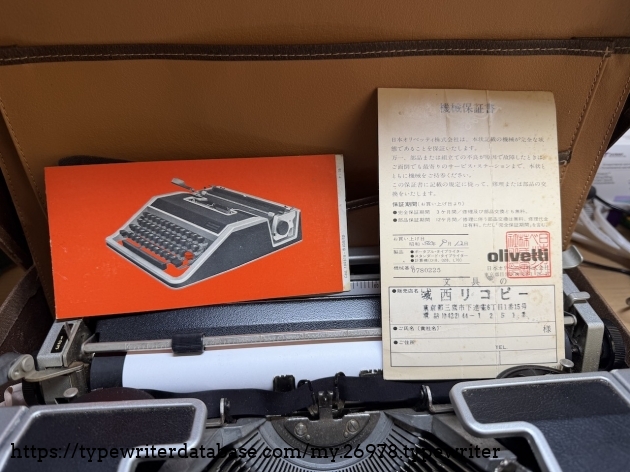 The typewriter works fine, just needing a thorough dusting. But what's important is its carrying case, a collaboration between Gucci and Olivetti that is much-coveted by collectors here in Japan. Unfortunately, the hard plastic on this particular Gucci case has broken into fragments. Now as to the reason for putting 1979 as the date of this machine, I noticed that there is a warranty card that dates to Showa 54, September 12. Showa 54 is 1979.