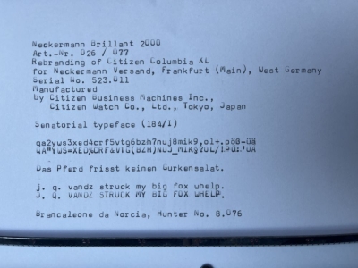 RESEARCH NOTE: When researching the Neckermann (Citizen) Brillant 2000 on a computer with lots of screen real estate, you may find that launching the Neckermann (Citizen) Serial Number page and the Neckermann (Citizen) Brillant 2000 By Model/Year/Serial page in new browser windows can give you interesting perspectives on changes throughout the model series.
