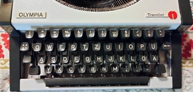 Found at Goodwill; otherwise in good shape but obviously stored in a garage for many years, interior littered with spider nest debris. A good cleaning was all she needed. First QWERTZ layout I've owned.