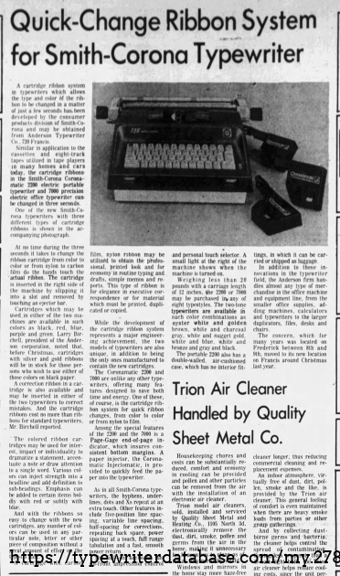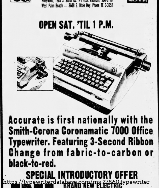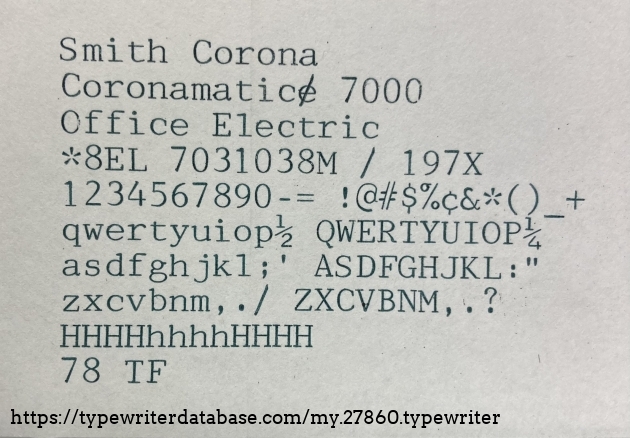 RESEARCH NOTE: When researching the Smith Corona Coronamatic 7000 on a computer with lots of screen real estate, you may find that launching the Smith Corona Serial Number page and the Smith Corona Coronamatic 7000 By Model/Year/Serial page in new browser windows can give you interesting perspectives on changes throughout the model series.