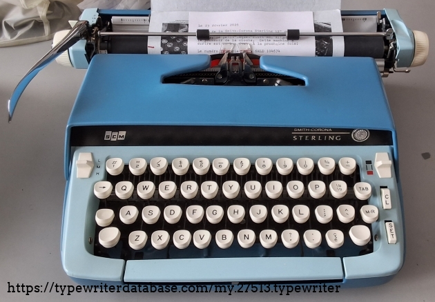 An oddity in the lineup of S-C, this 6MLD series is not in the typewriter database, maybe because this was made after the Galaxie 12 (6MLC)? It is simply named a Sterling, has a 12" platen but no mention of it in the name, and is flanked with a little round shiny logo with an S circled with dots.