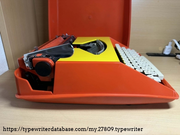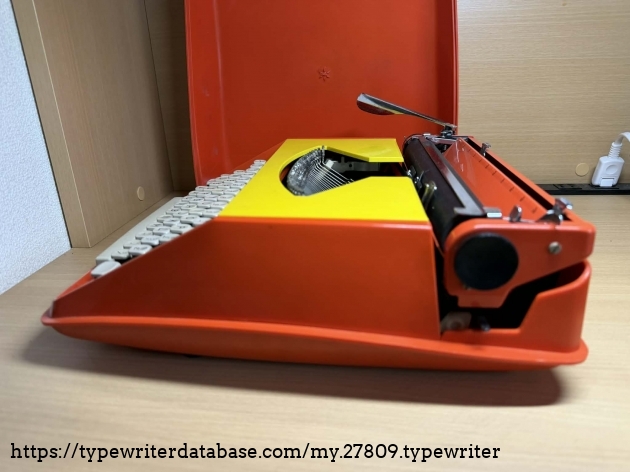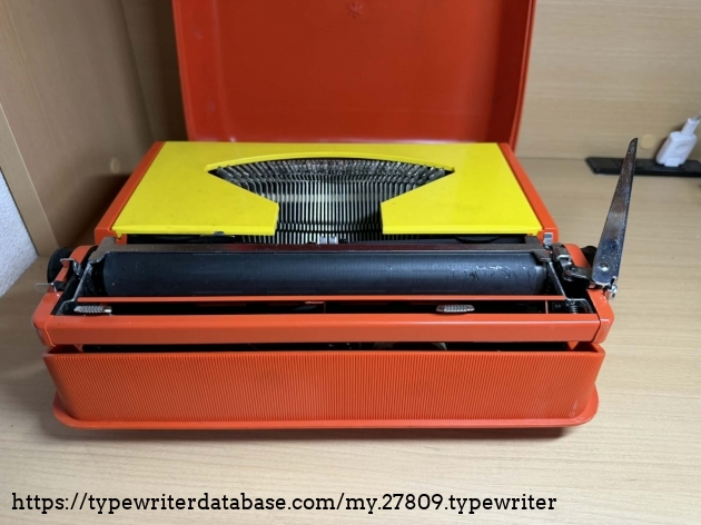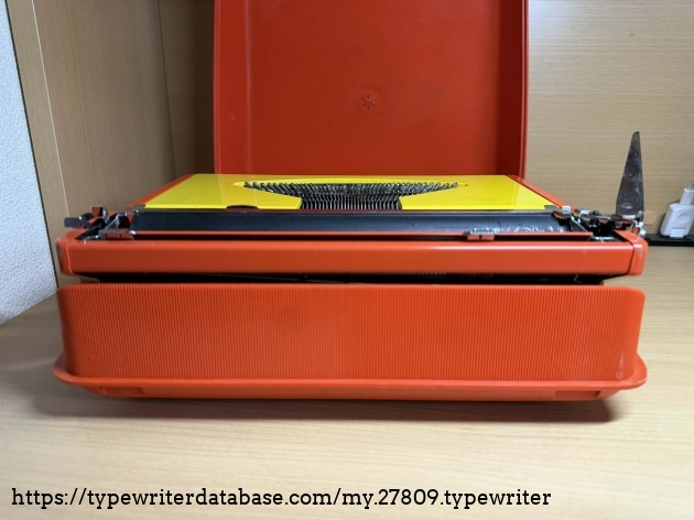 A recent purchase here in Kyoto, this beautiful typewriter made generally of plastic with metal chassis has a bit of an issue. Its ribbon doesn't seem to move and gets taut when you type. Nevertheless, I love the red and yellow color combination.