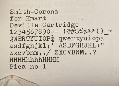 RESEARCH NOTE: When researching the Smith Corona Deville Cartridge on a computer with lots of screen real estate, you may find that launching the Smith Corona Serial Number page and the Smith Corona Deville Cartridge By Model/Year/Serial page in new browser windows can give you interesting perspectives on changes throughout the model series.