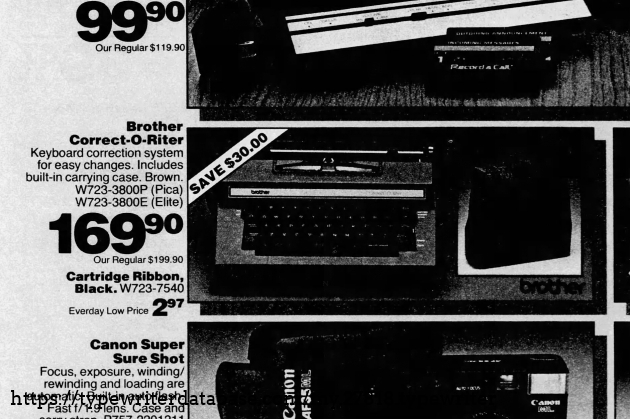 Brother comes out with the cassette in late 78. They call this the Correct-O-Riter I. Ca 1982, they offered this with the traditional ribbon and went back and forth between calling it a II, I or blank as this one is.