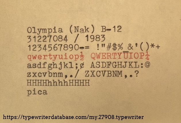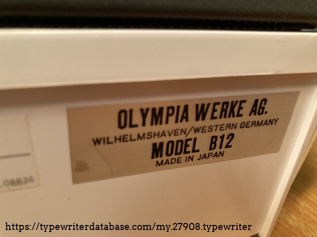 RESEARCH NOTE: When researching the Olympia (Nakajima) B12 on a computer with lots of screen real estate, you may find that launching the Olympia (Nakajima) Serial Number page and the Olympia (Nakajima) B12 By Model/Year/Serial page in new browser windows can give you interesting perspectives on changes throughout the model series.