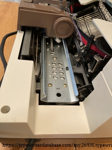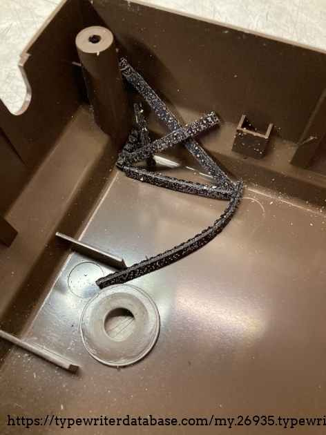 This one was square and had teeth, but I don't see why, as there is nothing on the gears. I used one of my big Smith Corona O-rings. Sometimes I wonder if these are too small in overall OD and thus causing the motor to work harder.